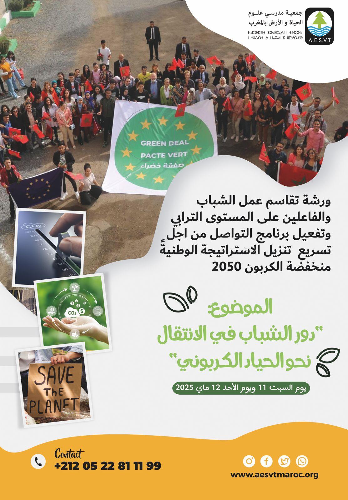 في إطار دعم الاستراتيجية الوطنية منخفضة الكربون 2050، تنظم جمعية مدرسي علوم الحياة والأرض بالمغرب ورشة لتقاسم عمل الشباب والفاعلين الترابيين، وتفعيل برنامج التواصل حول التحول البيئي.