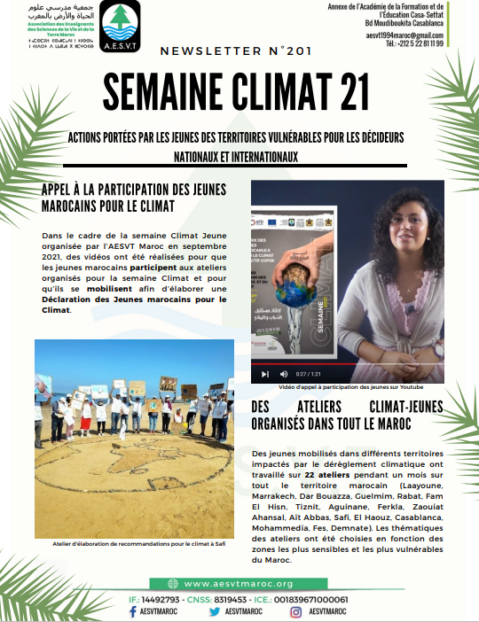09 Dec, 2021 NEWSLETTER SEMAINE CLIMAT 2021 Découvrez notre Newsletter n°201 relative à la Semaine Climat 2021