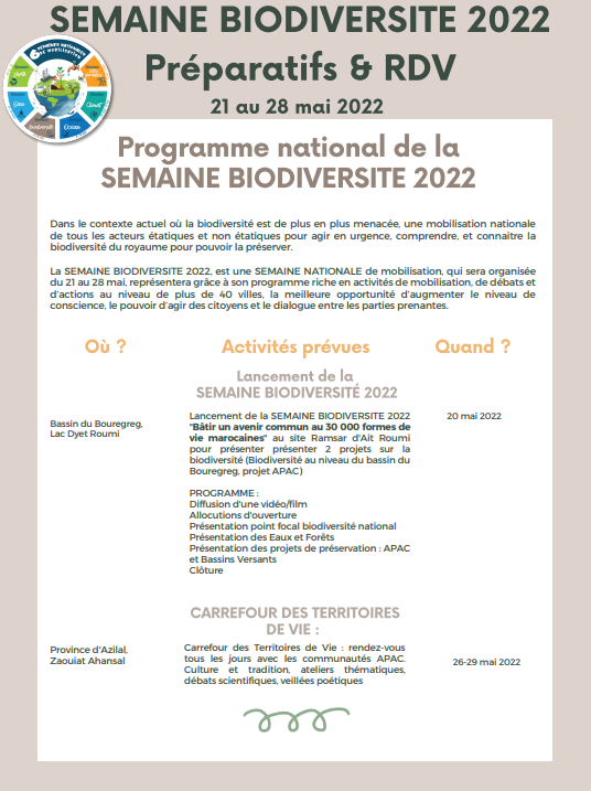 19 May, 2022 SEMAINE BIODIVERSITE 2022 Préparatifs & RDV Télécharger en pdf : SEMAINE BIODIVERSITE 2022 Préparatifs & RDV.pdf